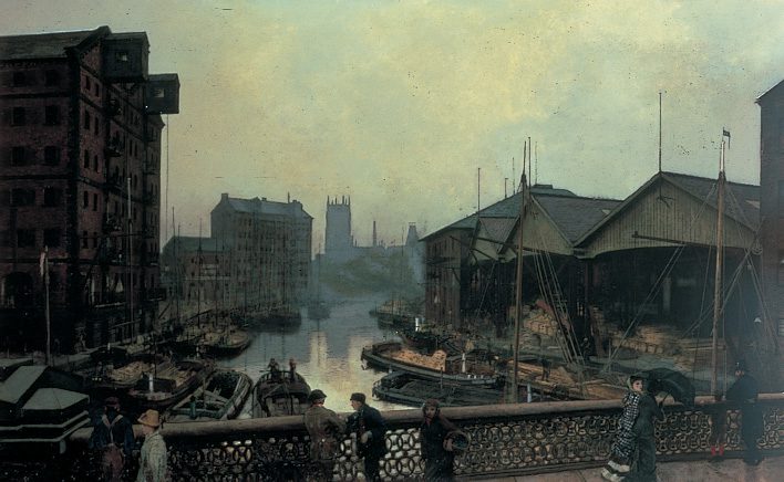 In the mid-Victorian era, when severe traffic became intolerable, the mediaeval stone bridge, Leeds’ only vehicular bridge, was finally replaced by a modern metal bridge.