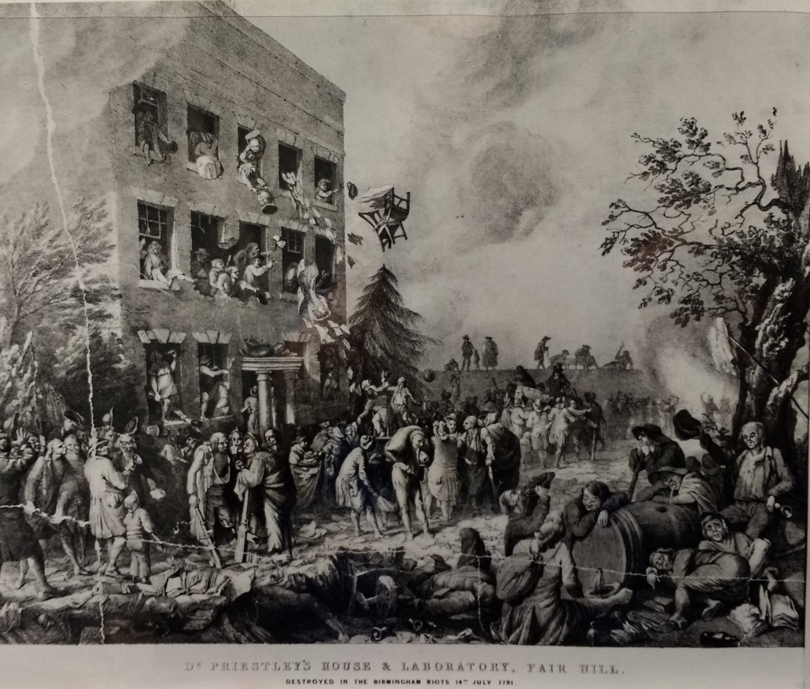 Джозеф Пристли активно поддерживал Американскую и Французскую революции, а также принял участие в кампании за отмену рабства. Впоследствии начались беспорядки, были организованы массированные нападения на сторонников революций, семья Пристли вынуждена была бежать сначала в Лондон, а затем в Америку.